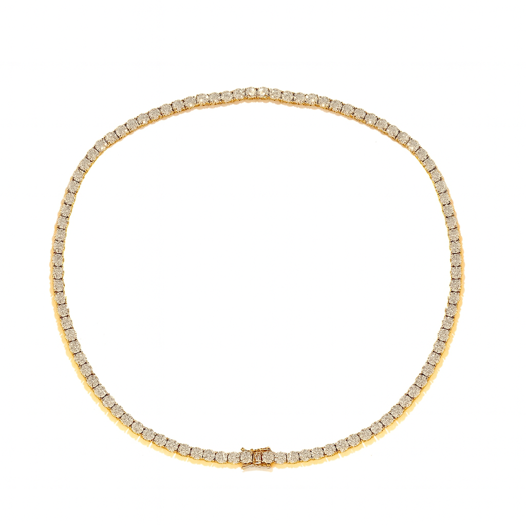 Valore Tennis Necklace Elevate your neckline with this timeless tennis necklace, adorned with perfectly cut Aurora Moissanite stones. Delicately brilliant yet bold enough to stand alone, it’s the ultimate in understated luxury.